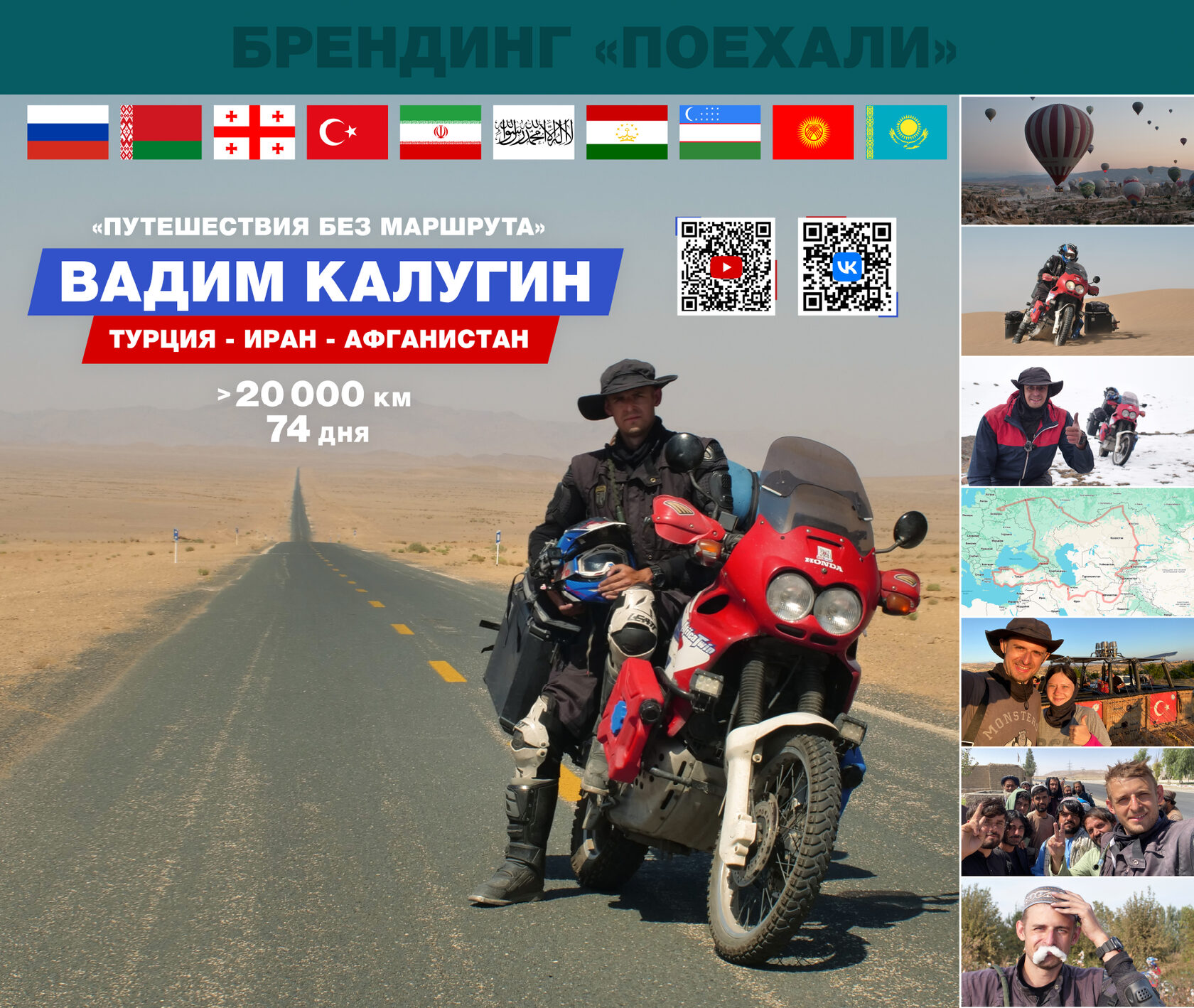 На выставке путешественник представит свой стенд, а в воскресенье, 16 ноября, на сцене В1 павильона В в 14:00 Вадим расскажет все про: «Путешествие без маршрута: Турция - Иран - Афганистан (20 000 км на мотоцикле за 74 дня)»